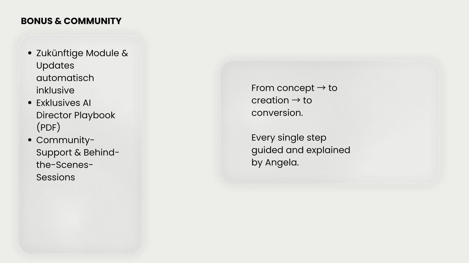In jedem Modul persönlich begleitet von Angela.